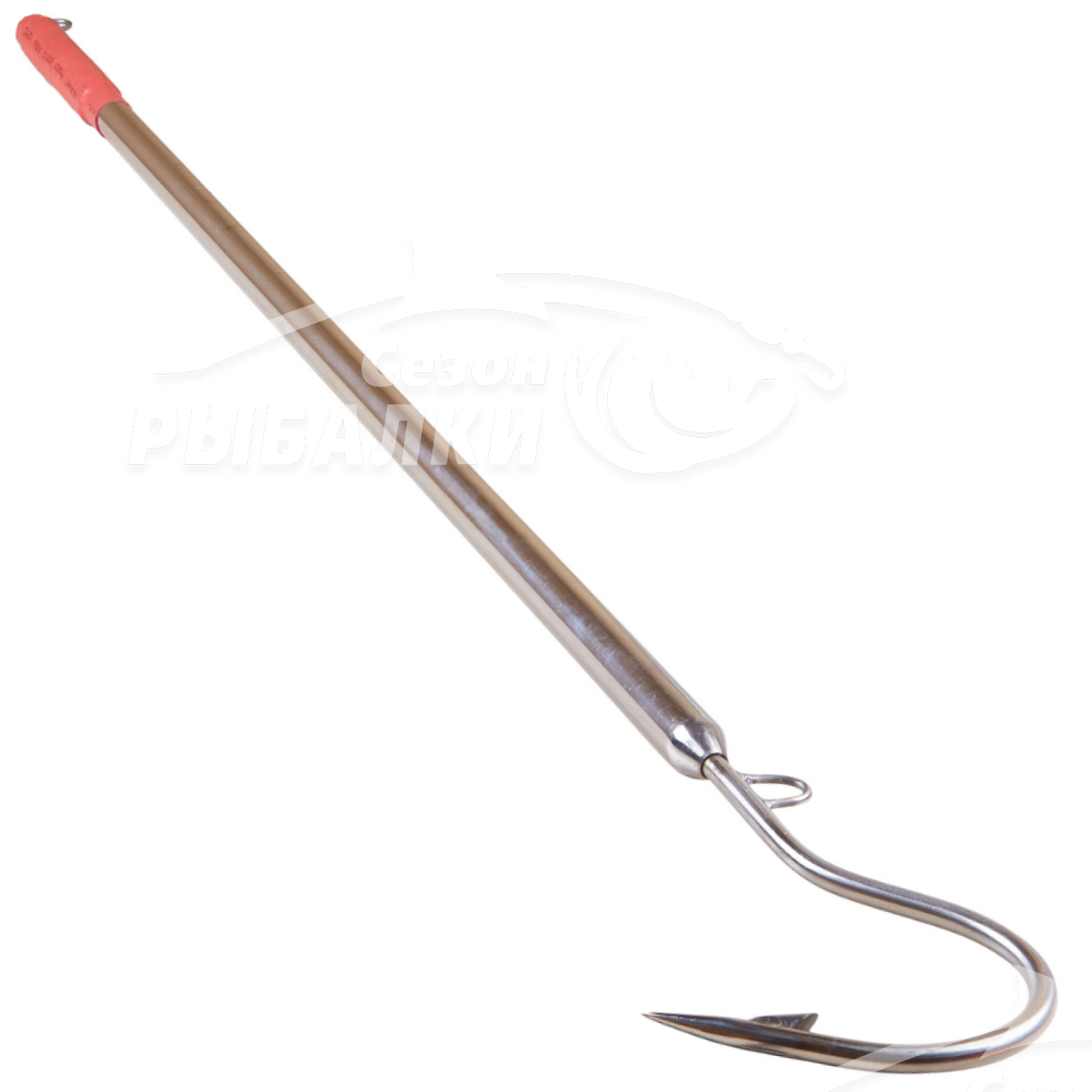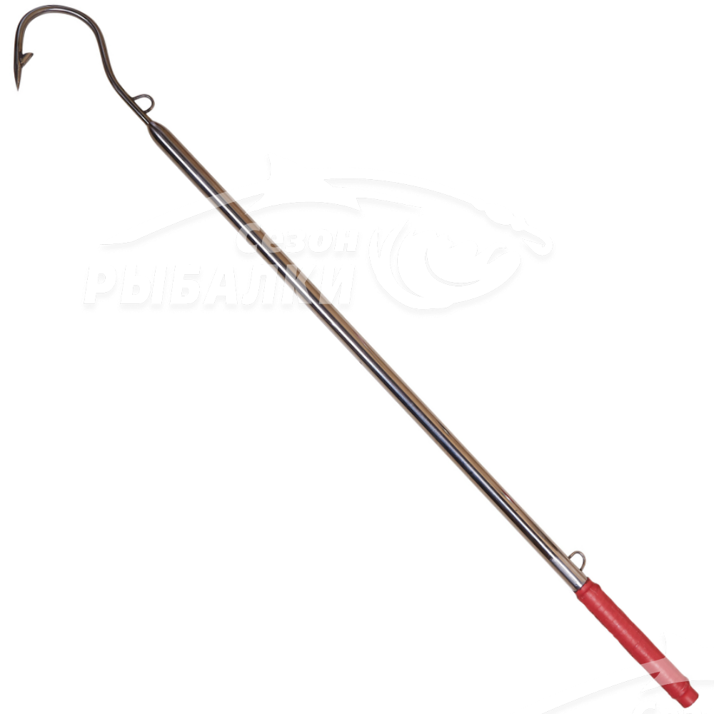 Багор-крюк ручной работы для морской рыбалки. Изготовлен полностью из нержавеющей стали. Труба диаметром 20мм, голова из прутка толщиной 8мм, с приваренной бородкой на цевье крючка, для предотвращения схода рыбы. На самом багре имеются две петли из нержавеющей стали для для крепления страховочного фала, который обычно привязывается к борту судна, на тот случай если не получается удержать трофей руками.