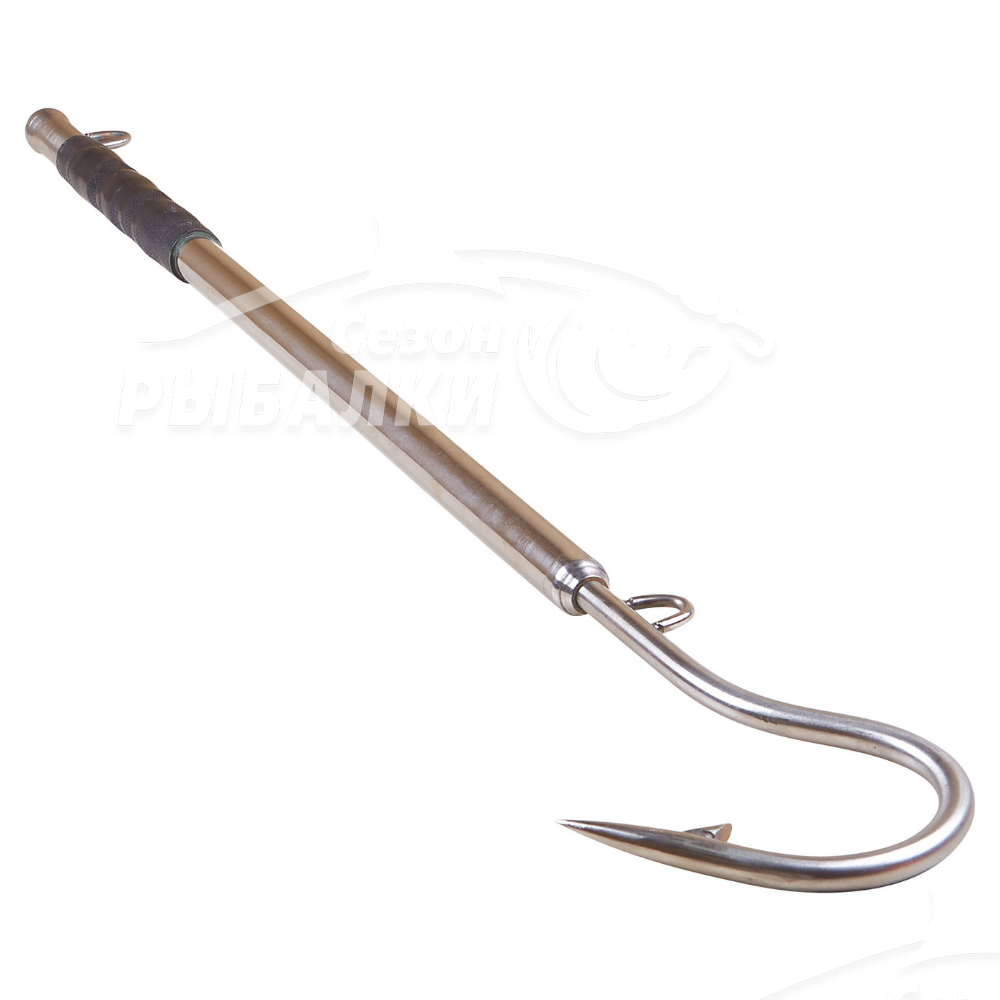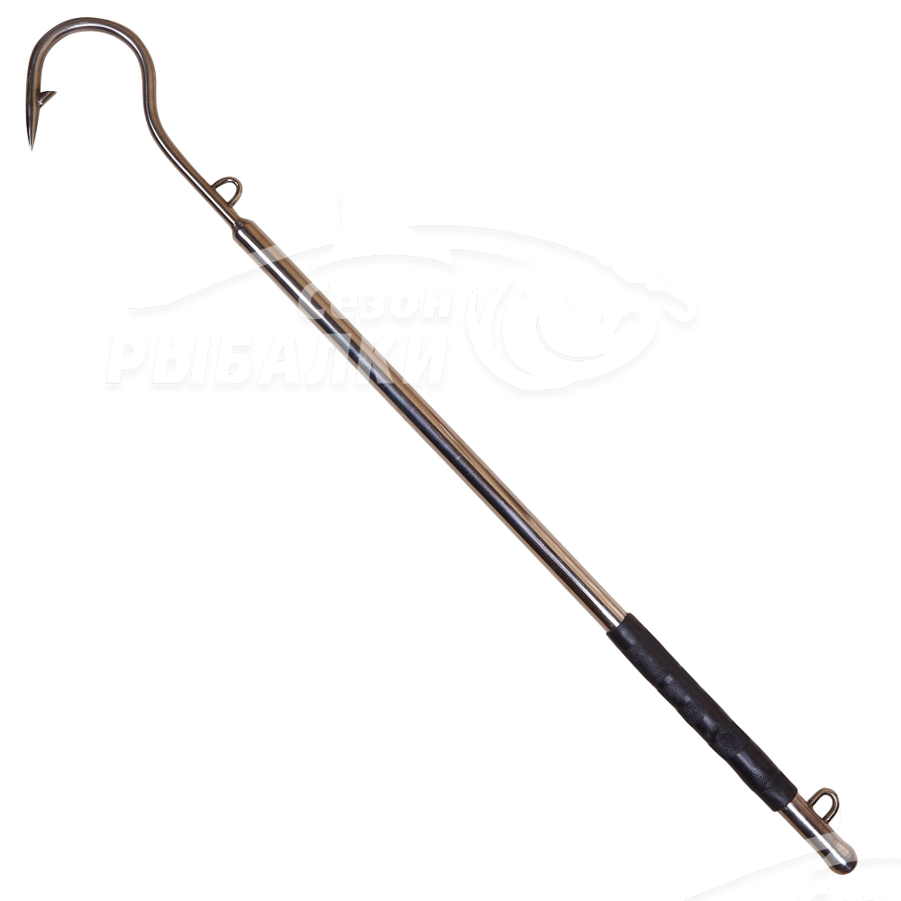 Багор-крюк ручной работы для морской рыбалки. Изготовлен полностью из нержавеющей стали. Труба диаметром 20мм, голова из прутка толщиной 8мм, с приваренной бородкой на цевье крючка, для предотвращения схода рыбы. На самом багре имеются две петли из нержавеющей стали для для крепления страховочного фала, который обычно привязывается к борту судна, на тот случай если не получается удержать трофей руками.