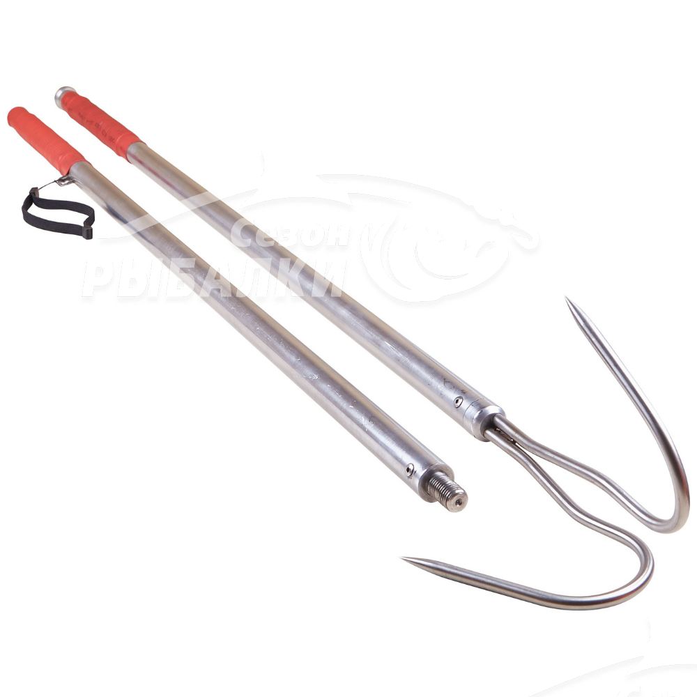 Багор-крюк двойной двух частный, для удержания крупной рыбы. В ручке багра вставлена цанга с резьбой из нержавеющей стали, что позволяет удлинить багор по желанию либо укоротить.