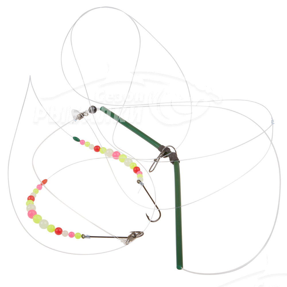 Оснастка для ловли камбалы. Оснащена двумя поводками с разноцветными бусинами и крючками с длинным цевьем типа Abberdin №1. Основная леска 0.6мм, на ней находится антизакручиватель, на который крепится грузило, которое в комплект оснастки не входит. Незначительно может отличатся по параметрам и цвету от указанной на фото, поскольку изготавливается вручную.