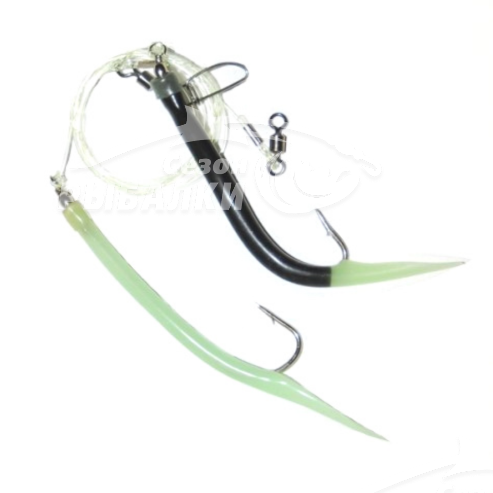 - Усиленная ставка дроп шот с двумя крючками Gummi Makk 10/0 Black-Glow/Glow