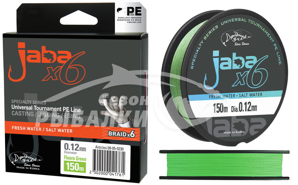 Jaba X6 - PE шнур плетением в 6 нитей. Редкий тип плетения, являющейся отличной альтернативой по качеству шнурам 8 нитей, и при этом значительно бюджетней. Плетение 6 нитей применяется крайне редко, но шнуры с данным плетением значительно выше качеством, обладают лучшими рабочими характеристиками чем шнуры плетением 4 нити, и существенно дешевле шнуров плетением 8 нитей. 6 нитей плетения позволяют делать более тонкие шнуры, относительно 8 нитей и поэтому у модели Jaba X6 есть шнур с толщиной 0.05 мм, что составляет редкие 0.1 PE. Высокомодульный полиэтилен (PE) с плетением 6 нитей, малошумный и устойчивый к износу из- за равномерного распределения волокон в плетении. В новой программе добавлен цвет "радуга" со сменой цвета каждые 10 метров, что очень удобно для контроля дальности заброса, точного определения дистанции поклевки и фиксации места стоянки хищника.