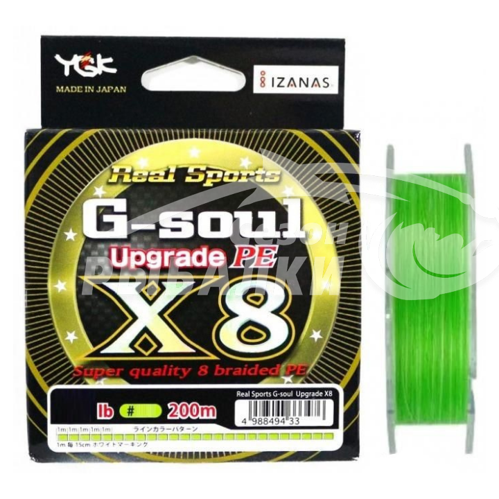 G-soul X8 Upgrade - имеет плотное 8-мижильное плетение, а круглый профиль шнура позволяет забрасывать приманку на сверхдальние дистанции. Фирменное GP покрытие делает шнур устойчивым к абразиву и увеличивает срок его эксплуатации.