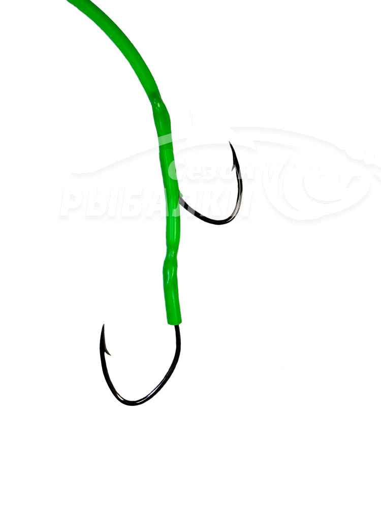 Донная оснастка для ловли сома. В оснастку входят два крючка формы Aji размером 6/0 и 4/0, поплавок для удержания наживки над дном, силиконовая трубка. Собран монтаж на 1мм плетённом шнуре, с разрывной нагрузкой примерно 90кг. Незначительно может отличатся по параметрам и цвету от указанной на фото, поскольку изготавливается вручную.