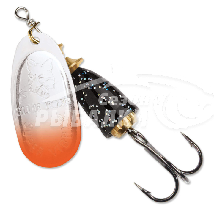 Blue Fox Vibrax Fluorescent - имеет запатентованное тело из двух частей в виде колокольчика при вращении лепестка создает низкочастотные звуковые колебания, которые привлекают рыбу и провоцируют на поклёвку. Уникальный дизайн блесны практически исключает закручивание лески.