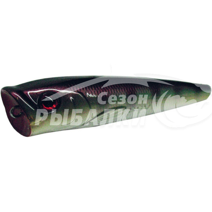 Мини поппер для крупной рыбы. Так можно без тени сомнения охарактеризовать эту приманку. На наш взгляд это один из самых удачных попперов. При проводке поппер издав характерный звук, слегка подныривает и затем медленно всплывает, замирая на поверхности, в этот момент и следует поклевка. Поппер отгружен так что, занимая в воде почти вертикальное положение, лишь носовой частью торчит из воды, отсюда и столь результативная игра, которую дополняет оперение на тройнике.
