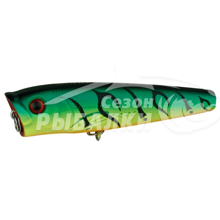 Мини поппер для крупной рыбы. Так можно без тени сомнения охарактеризовать эту приманку. На наш взгляд это один из самых удачных попперов. При проводке поппер издав характерный звук, слегка подныривает и затем медленно всплывает, замирая на поверхности, в этот момент и следует поклевка. Поппер отгружен так что, занимая в воде почти вертикальное положение, лишь носовой частью торчит из воды, отсюда и столь результативная игра, которую дополняет оперение на тройнике.