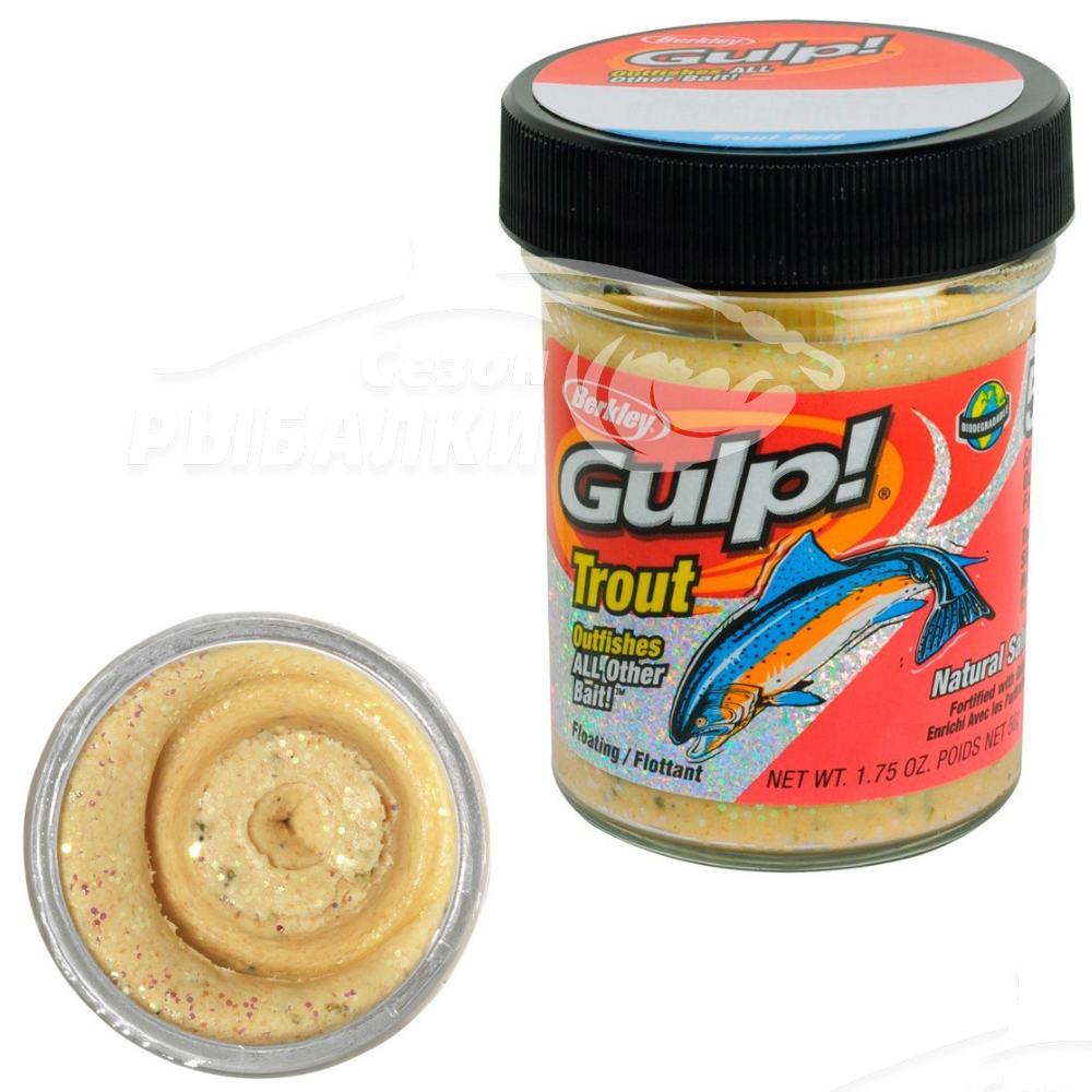 Паста форелевая Berkley Gulp Trout Dough Natural Scent Garlic-Chunky Cheese имеет натуральный запах чеснока и рыбы, выпускается в трёх расцветках. Считается наиболее эффективной и универсальной приманкой.