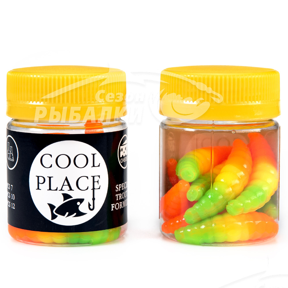 Форелевые приманки Cool Place изготовлены из съедобного силикона с насыщенным и устойчивым запахом сыра. В настоящее время данные приманки пользуются огромной популярностью у любителей ловли прудовой форели на коммерческих водоёмах, так как помимо невысокой цены и отменного качества, в ассортименте представлены самые востребованные типы приманок, которые имеют большую цветовую палитру.