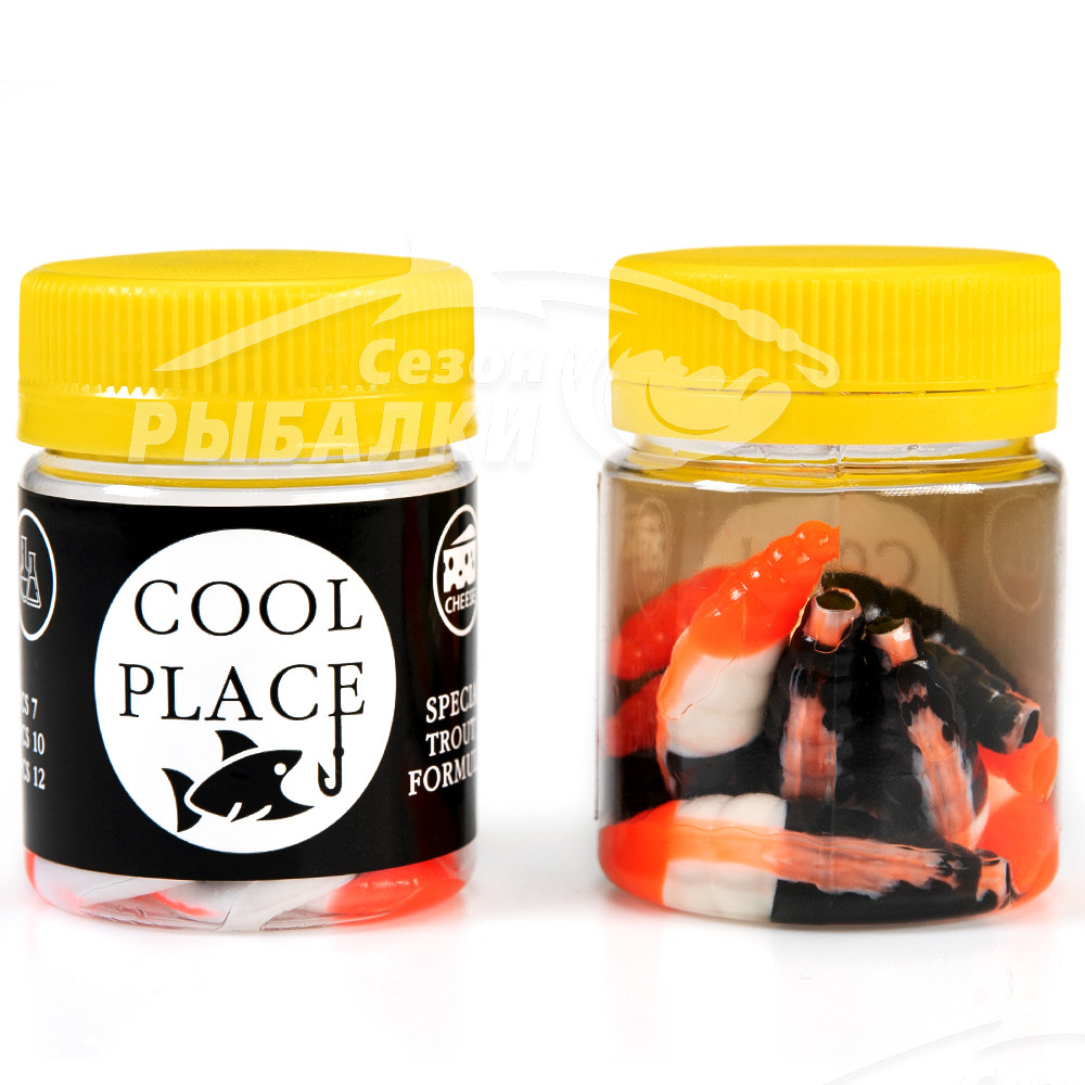 Форелевые приманки Cool Place изготовлены из съедобного силикона с насыщенным и устойчивым запахом сыра. В настоящее время данные приманки пользуются огромной популярностью у любителей ловли прудовой форели на коммерческих водоёмах, так как помимо невысокой цены и отменного качества, в ассортименте представлены самые востребованные типы приманок, которые имеют большую цветовую палитру.
