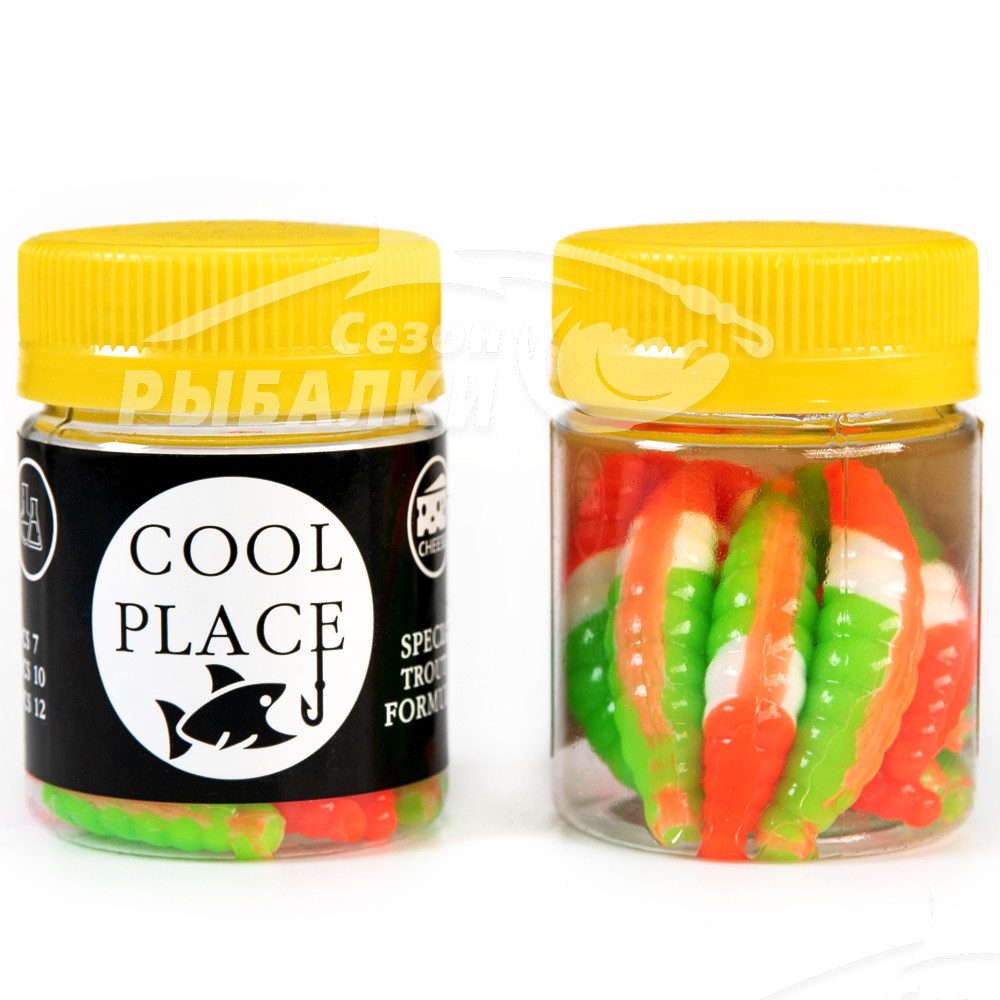 Форелевые приманки Cool Place изготовлены из съедобного силикона с насыщенным и устойчивым запахом сыра. В настоящее время данные приманки пользуются огромной популярностью у любителей ловли прудовой форели на коммерческих водоёмах, так как помимо невысокой цены и отменного качества, в ассортименте представлены самые востребованные типы приманок, которые имеют большую цветовую палитру.