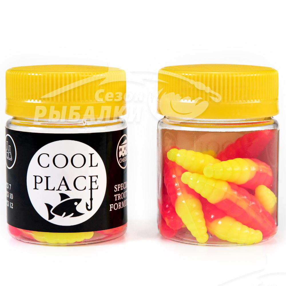 Форелевые приманки Cool Place изготовлены из съедобного силикона с насыщенным и устойчивым запахом сыра. В настоящее время данные приманки пользуются огромной популярностью у любителей ловли прудовой форели на коммерческих водоёмах, так как помимо невысокой цены и отменного качества, в ассортименте представлены самые востребованные типы приманок, которые имеют большую цветовую палитру.