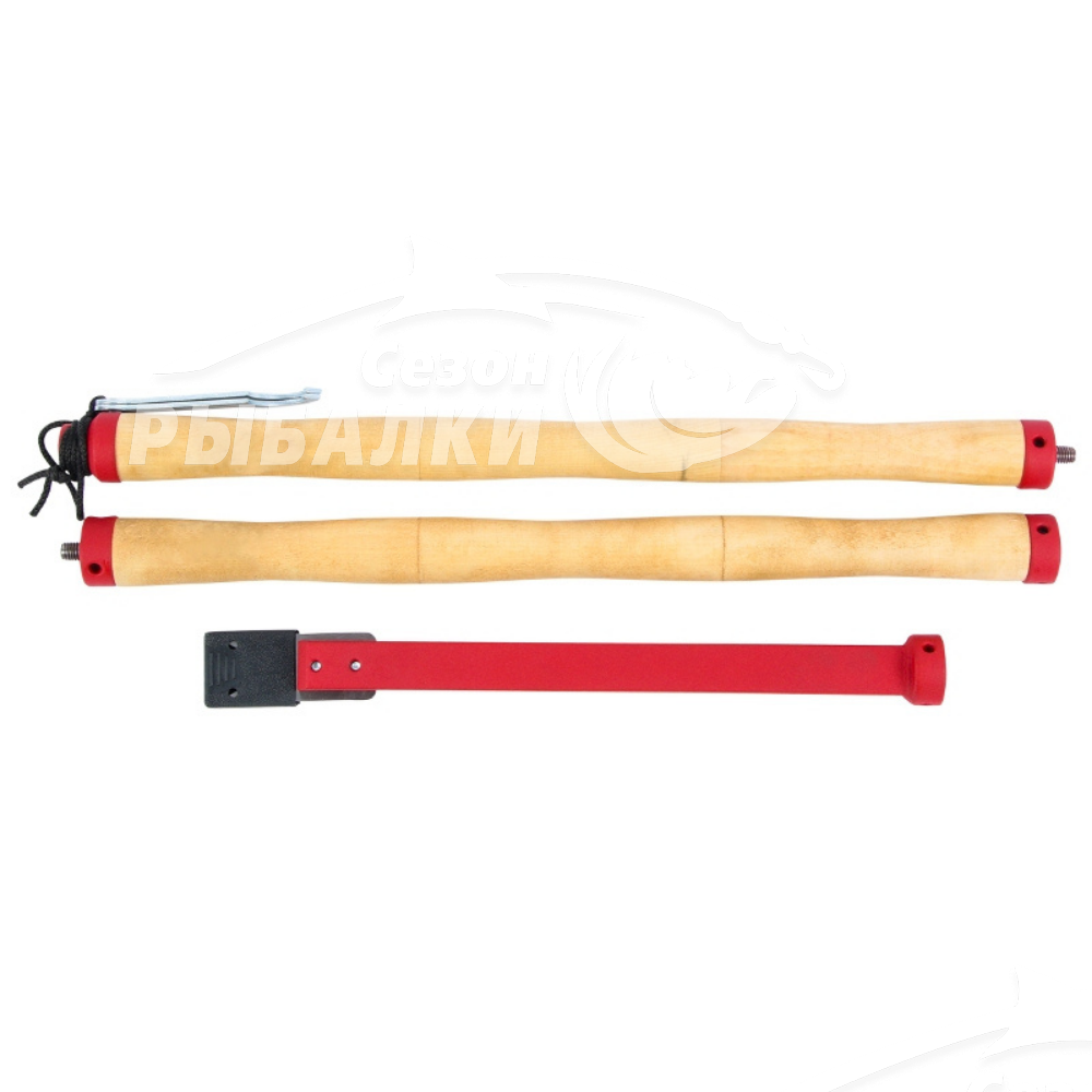 Эргономичная деревянная ручка состоит из двух частей, при необходимости одну из рукояток можно убрать. Ручка пешни изготовлена из березы и покрыта специальным антисептическим, защитно-декоративным составом.